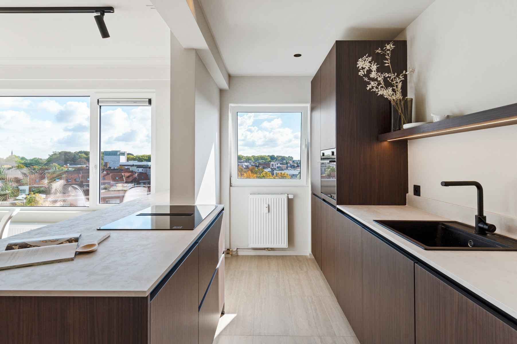 Met een oog voor stijl én detail werd elke ruimte zorgvuldig vernieuwd met gebruik van kwaliteitsvolle materialen! Dit komt volledig tot zijn recht in de lichtrijke leefruimte welke werd voorzien van een mooie, natuurlijke eiken parket, die naadloos doorloopt tot in de luxueuze open keuken! Deze is uitgerust met hoogwaardige materialen en werd daarnaast in een trendy notelaar-jasje gestoken, wat zorgt voor een verfijnde look-and-feel! Verder zijn er 2 slaapkamers (13 m² & 8,5 m²) die rechtstreeks toegang bieden tot een uiterst zonnig terras van maar liefst 7 m² - de ideale plek voor ontspanning! Tot slot is er nog een praktische berging voorzien met aansluitingen voor was- en droogmachine én uiteraard een stijlvolle badkamer met een ruime inloopdouche, dubbele lavabo in meubel en handdoekradiator. Het toilet is apart.