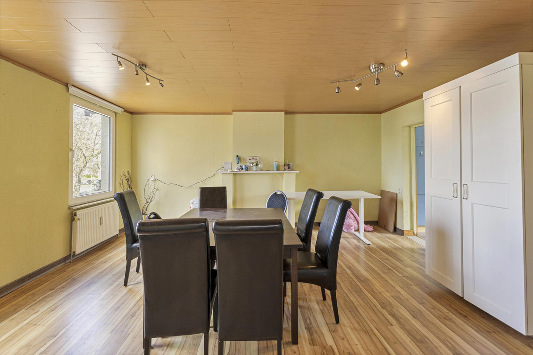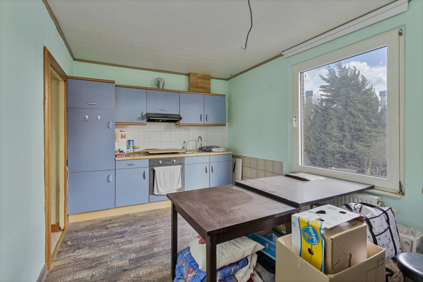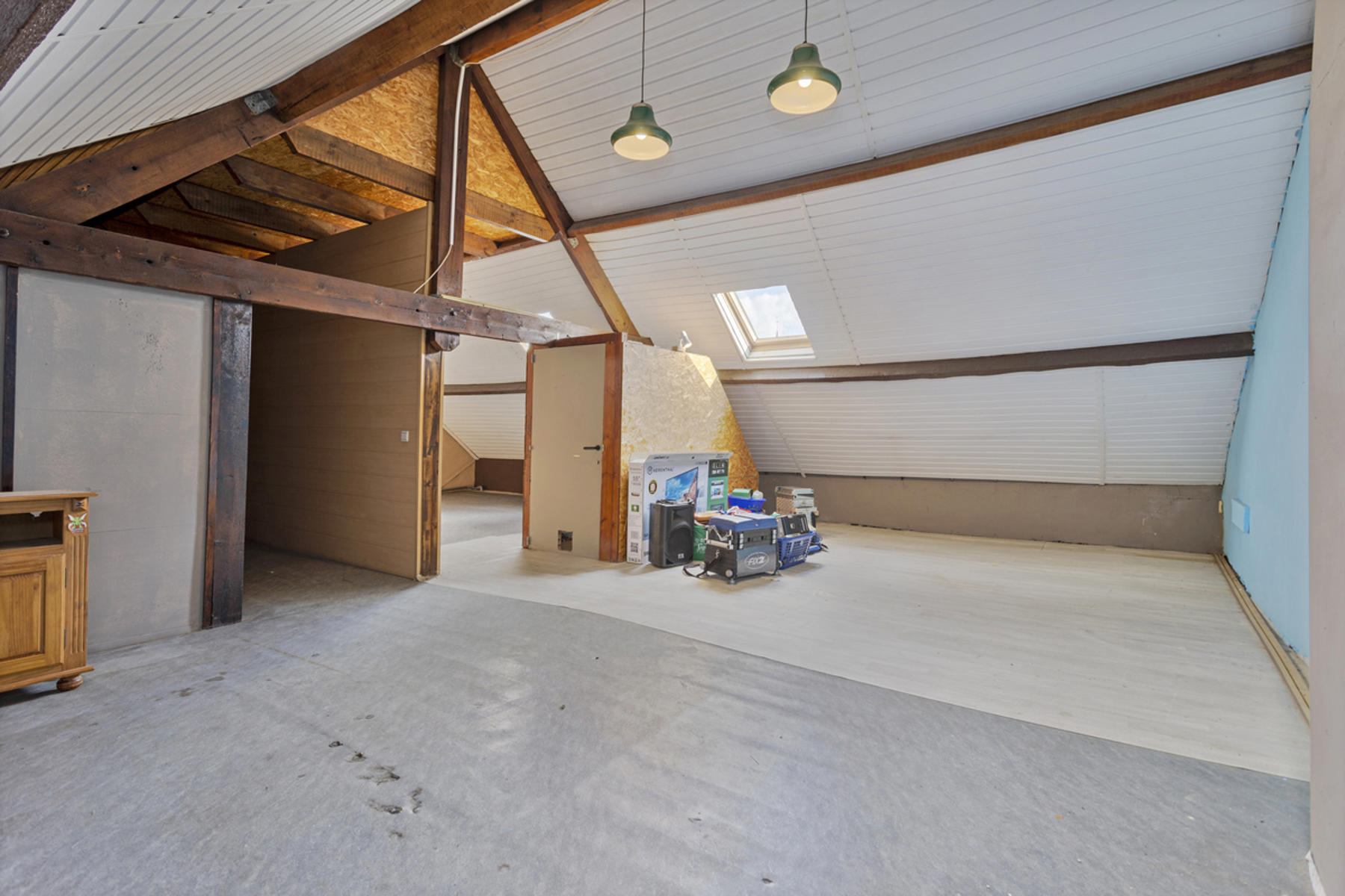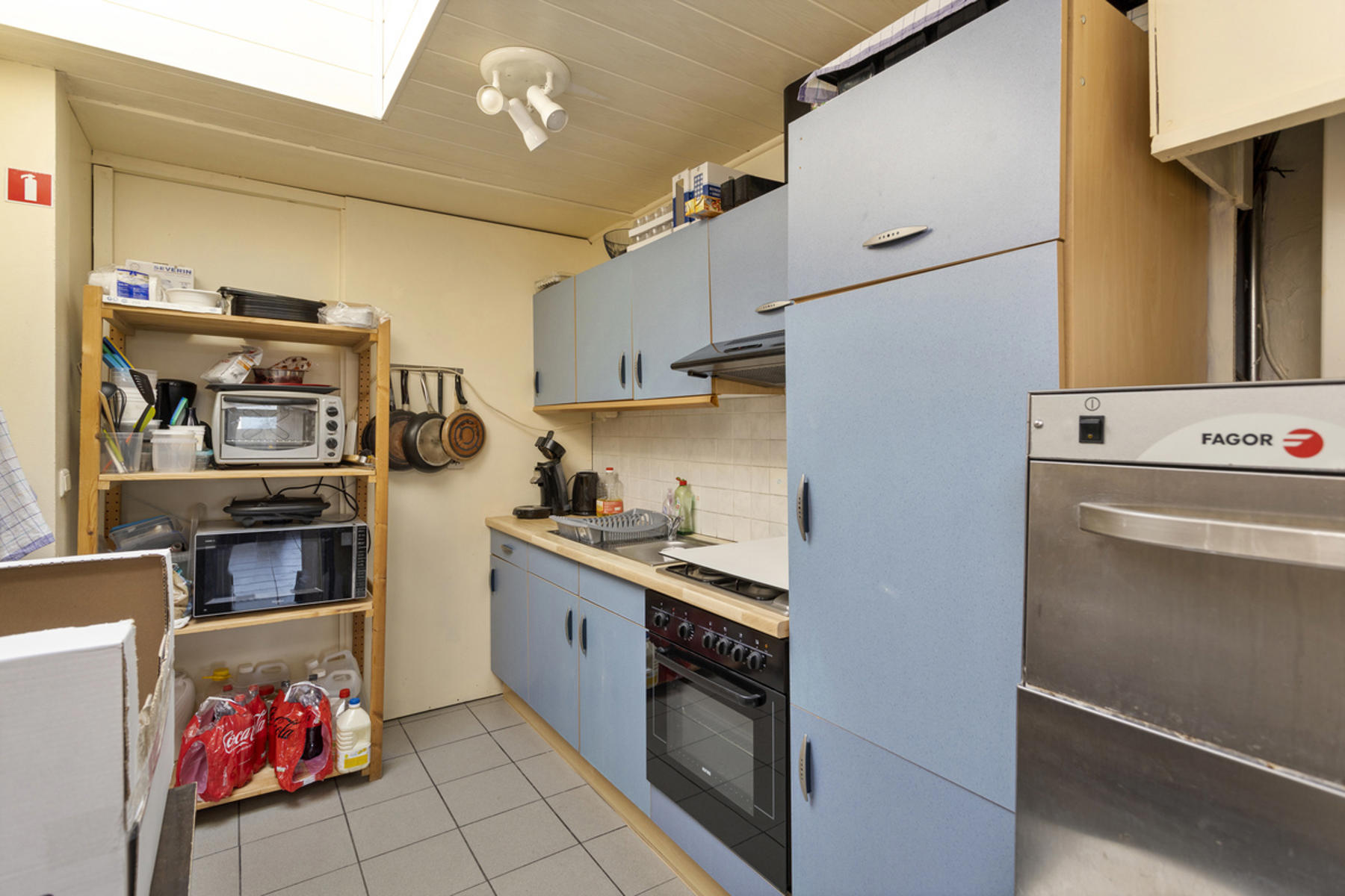 Dit handelshuis bestaat uit een groot café van 210m² en een ruim appartement van 175m². Café is uiteraard voorzien van toog, ingerichte keuken met praktische bijkeuken en sanitair voor zowel dames als heren. Achteraan is er een uiterst gezellige veranda welke zicht biedt op de grote, zonnige tuin. Op de eerste verdieping vindt men de woon- en eetkamer met aangrenzend de keuken welke werd ingericht met een gasfornuis, oven, dampkap, spoelbak en ijskast. De badkamer is voorzien van douche, lavabomeubel en toilet. Tot slot is er de grote zolderverdieping van 70m² welke men naar wens kan inrichten.