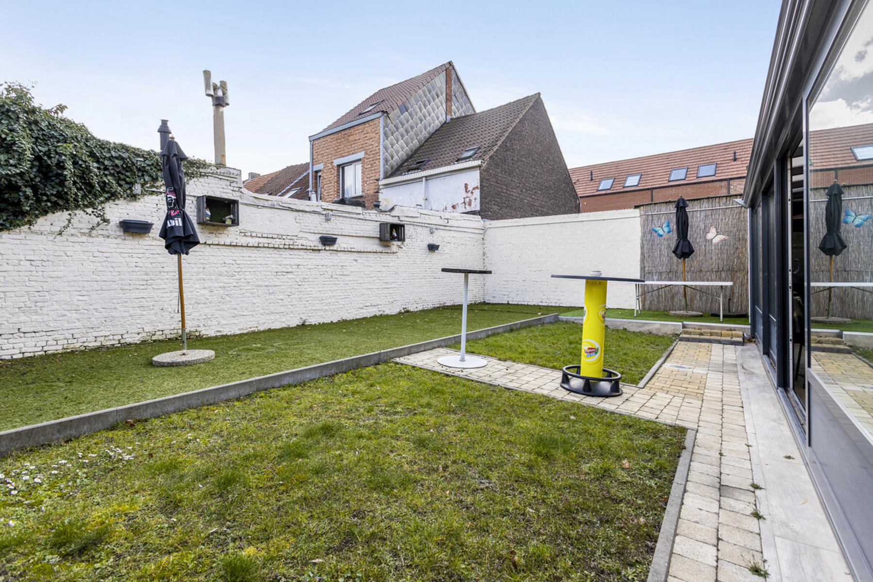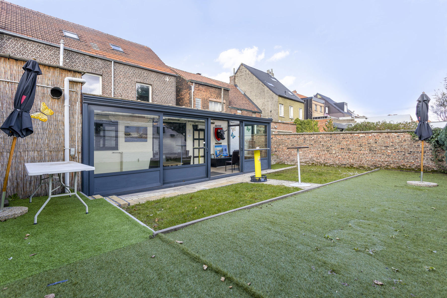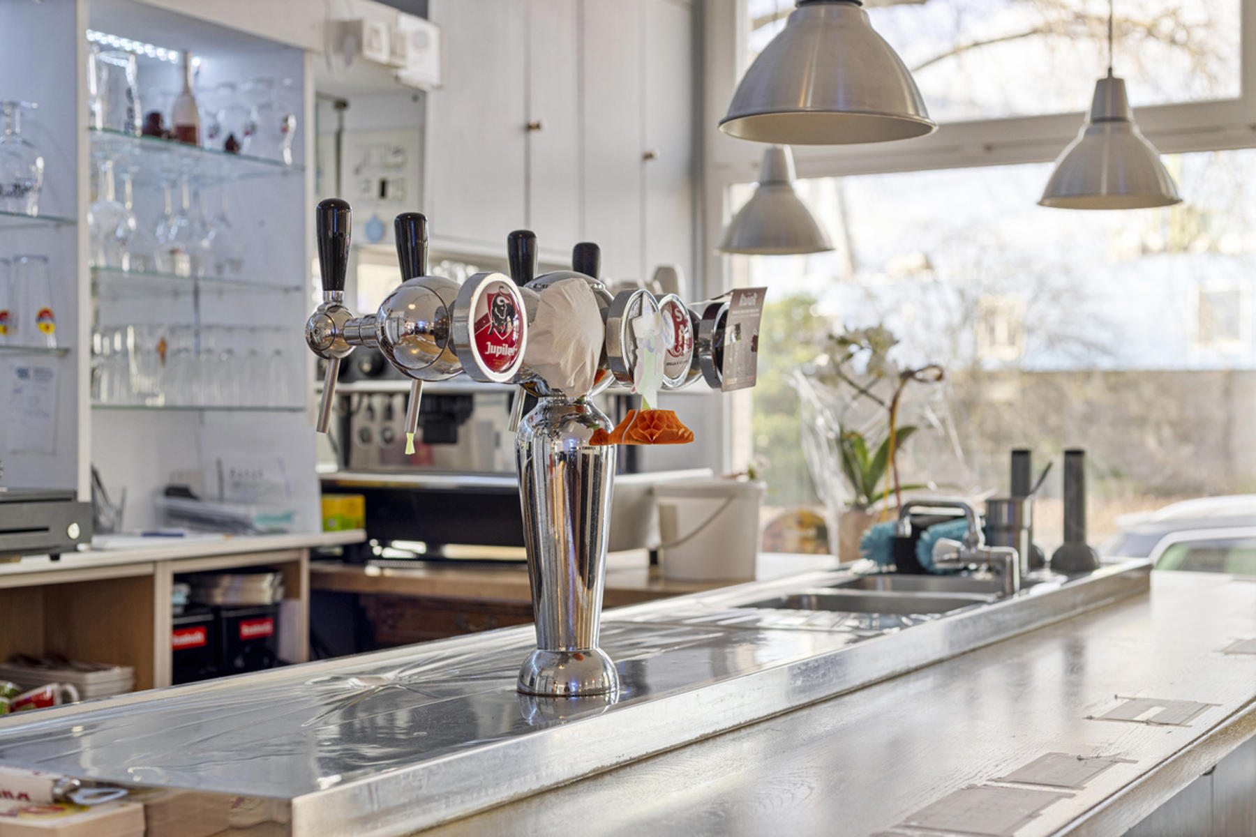 Technische gegevens café: voornamelijk hoogrendementsglas in aluminium of PVC, collectieve centrale verwarming op gas en individuele centrale verwarming op elekticiteit (warmtepomp lucht/lucht)
